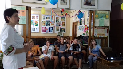 Під такою назвою відбулася розважально - пізнавальна програма напередодні Дня Незалежності. Зранку бібліотекарі знайомили маленьких громадян з пересувною виставкою "Книга об'єднує дітей України". Вуличний майданчик, що біля бібліотеки, на годину перетворився в читальний зал. Старші користувачі, в цей день, мали змогу переглянути слайд-подорож "У звичаях, традиціях народу ти душу України пізнавай" та пройти всі лабіринти історичного квесту -"Знайди скарби наших предків". Учасники квесту складали карту України, змагалися з комп'ютером в ерудит-вікторину "Відомі українці", а загадки з "бабусиної скрині " були із сюрпризом. Веселе караоке ще більше згуртувало дітвору і допомогло відшукати скарб. Всі учасники отримали солодкі призи.