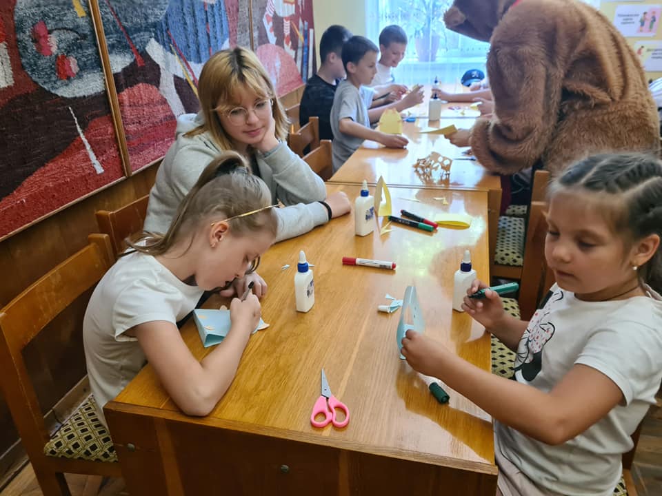 Сьогодні до нас завітали дітки з денного табору школи «English for Everyone» -Англійська для кожного (вчитель Решко Зіта). Багато цікавого дізнались дітки про буття книг і бібліотеки. Присутні , заплющивши очі уявили «Про що мріє книга», створили «Оркестр із газетних листочків». А ще, бібліотекарі підготували веселі вікторини, конкурси, мультфільми. Гостем сьогоднішньої зустрічі був ведмедик, який запропонував дітворі гру на англійській мові, та майстер-клас з виготовлення кумедного паперового ведмедика.